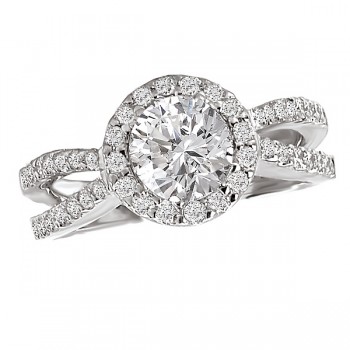 Split Shank Diamond Ring with Round Halo in 18kt White Gold (D 1/2 carat total weight) This item is a SEMI-MOUNT and it comes with NO CENTER STONE as shown but it will accommodate a 5.5-6.5mm round center stone.
