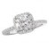 Cushion Style Halo Diamond Ring in 18kt White Gold. (D 1/3 carat total weight). This item is a SEMI-MOUNT and it comes with NO CENTER STONE as shown but it will accommodate a 7.4mm round center stone.