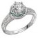 Round Halo Tsavorite and Diamond Ring with Etching Side Detail in 18kt White Gold. (D1/6 carat weight, S.09 gem weight) This item is a SEMI-MOUNT and it comes with NO CENTER STONE as shown but it will accommodate a 6.5mm round center stone.