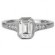 Emerald Style Halo Diamond Ring in 18kt White Gold with Milgrain Detail (D 1/6 carat total weight) This item is a SEMI-MOUNT and it comes with NO CENTER STONE as shown but it will accommodate a 7x5mm emerald cut center stone.