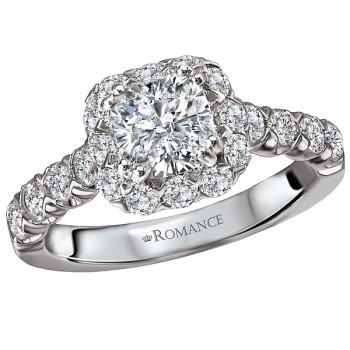Cushion Style Halo Diamond Ring in 18kt White Gold. (D 7/8 carat total weight) This item is a SEMI-MOUNT and it comes with NO CENTER STONE as shown but it will accommodate a 6.5mm cushion cut center stone.