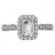 Gorgeous sparkling bridal ring showcases a halo and scalloped shank lined with faceted diamonds set in high polished 18k white gold and milgrain detail. (D 1/3 carat total weight) This item is a SEMI-MOUNT and it comes with NO CENTER STONE as shown but it will accommodate a 7x5mm emerald cut center stone.