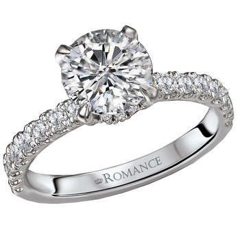Diamond Ring in 18kt White Gold with Peg Head. (D 1/2 carat total weight) This item is a SEMI-MOUNT and it comes with NO CENTER STONE as shown but it will accommodate a 7.4mm round center stone.