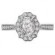 This Elegant Bridal Ring Features Sparkling Graduated Round Diamonds Surrounding the Scalloped Halo Created in High Polished 18k White Gold with Milgrain Detail. (D 3/8 carat total weight) This ring is a SEMI-MOUNT and it comes with NO CENTER STONE as shown but it will accommodate a 7x55mm oval center stone.