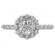 This high polished 18k white gold bridal ring features 22 round faceted diamonds encompassing the 6.5mm center stone setting. (D 5/8 carat total weight) This ring is a SEMI-MOUNT and it comes with NO CENTER STONE as shown.