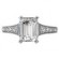 This designer inspired ring showcases graduated diamonds leading up to the center stone setting with heart shaped prongs created in high polished 18kt white gold. (D 1/3 carat total weight) This ring is a SEMI-MOUNT and it comes with NO CENTER STONE as shown but it will accommodate a 8.5x6.5mm emerald center stone.