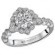 Sparkling bridal ring features a round halo trimmed with milgrain and diamonds set in high polished 18k white gold. (D 1/6 carat total weight) This SEMI-MOUNT ring comes with NO CENTER STONE but it will accommodate a 6.5mm round center.