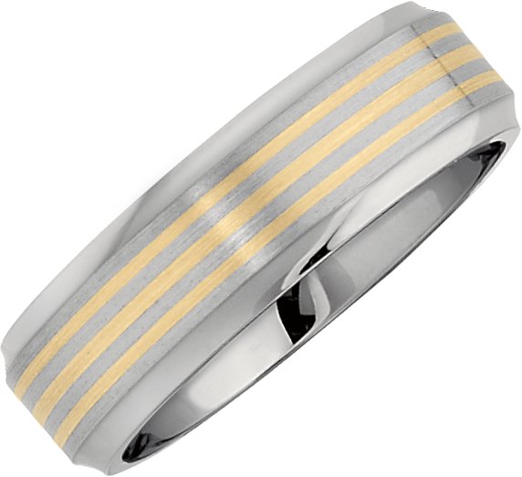 T922 / Titanium / Satin Finished / 10 / 7 Mm / Polished / 14K Inlay Bevelled Band