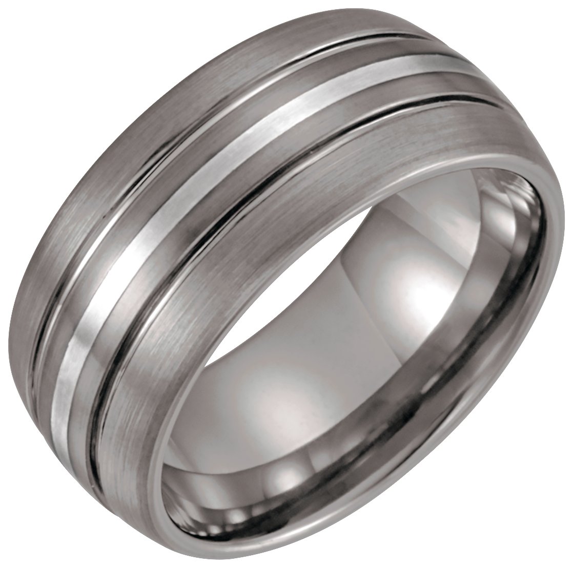 Tar400 / Tungsten & Sterling Silver / 12.5 / 10 Mm / Polished / Slight Dome Grooved Band