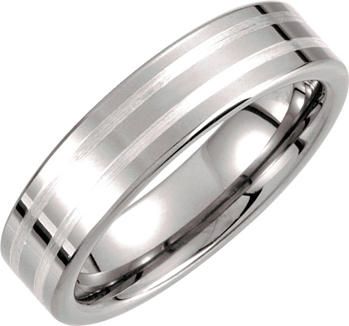 Tungsten 6 mm Flat Band with Sterling Silver Inlay Size 10.5