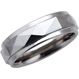 Tungsten 7.3 mm Faceted Band with Ridge Size 10.5