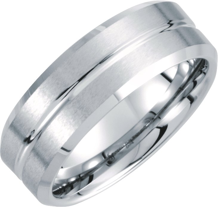 Tungsten 8.3 mm Beveled Band with Grooved Center Size 11