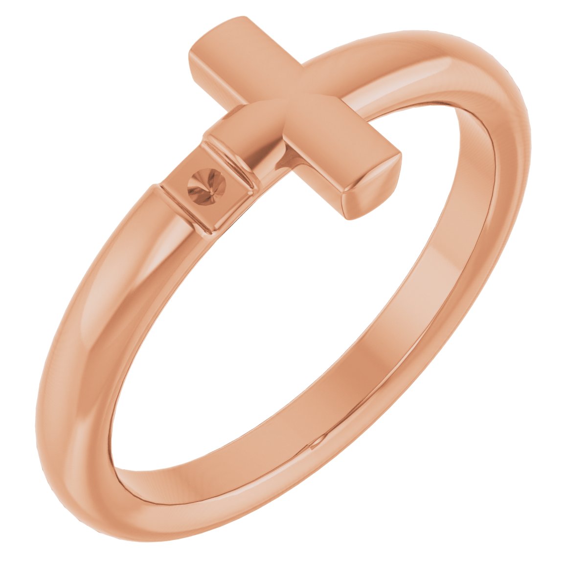 R43090 / Ring / Set / 14K Rose / Natural Diamond / Round / 2.25 Mm / Polished / .05 Ct Natural Diamond Cross Ring