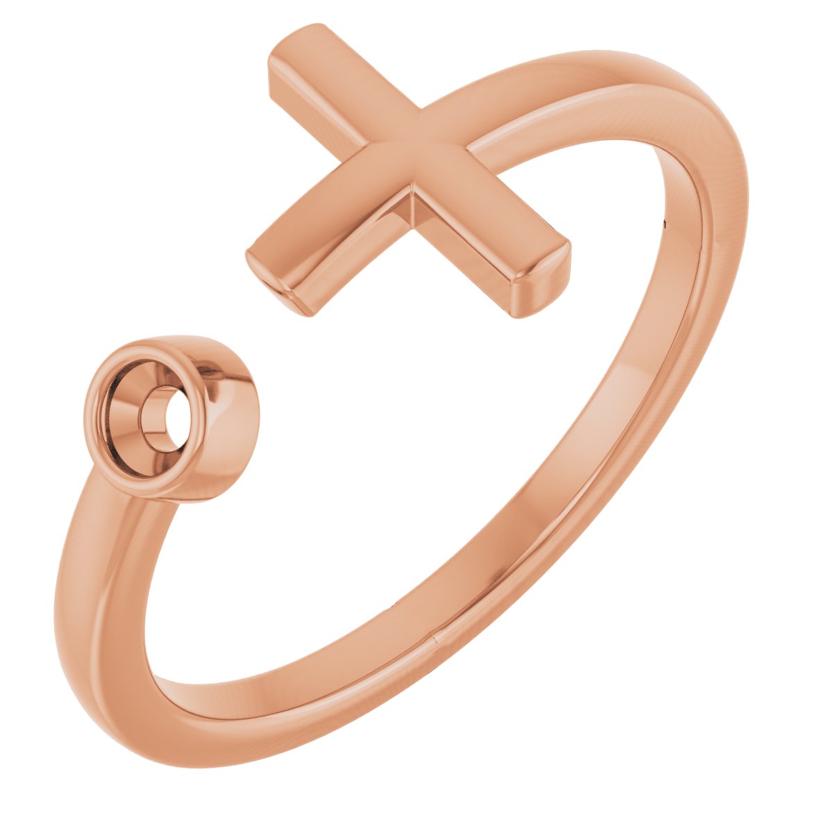 R43083 / Ring / 14K Rose / Set / Natural Diamond / Round / 2.5Mm :: 0.06 Ct / I1, G-H / Polished / .06 Ct Natural Diamond Negative Space Cross Ring