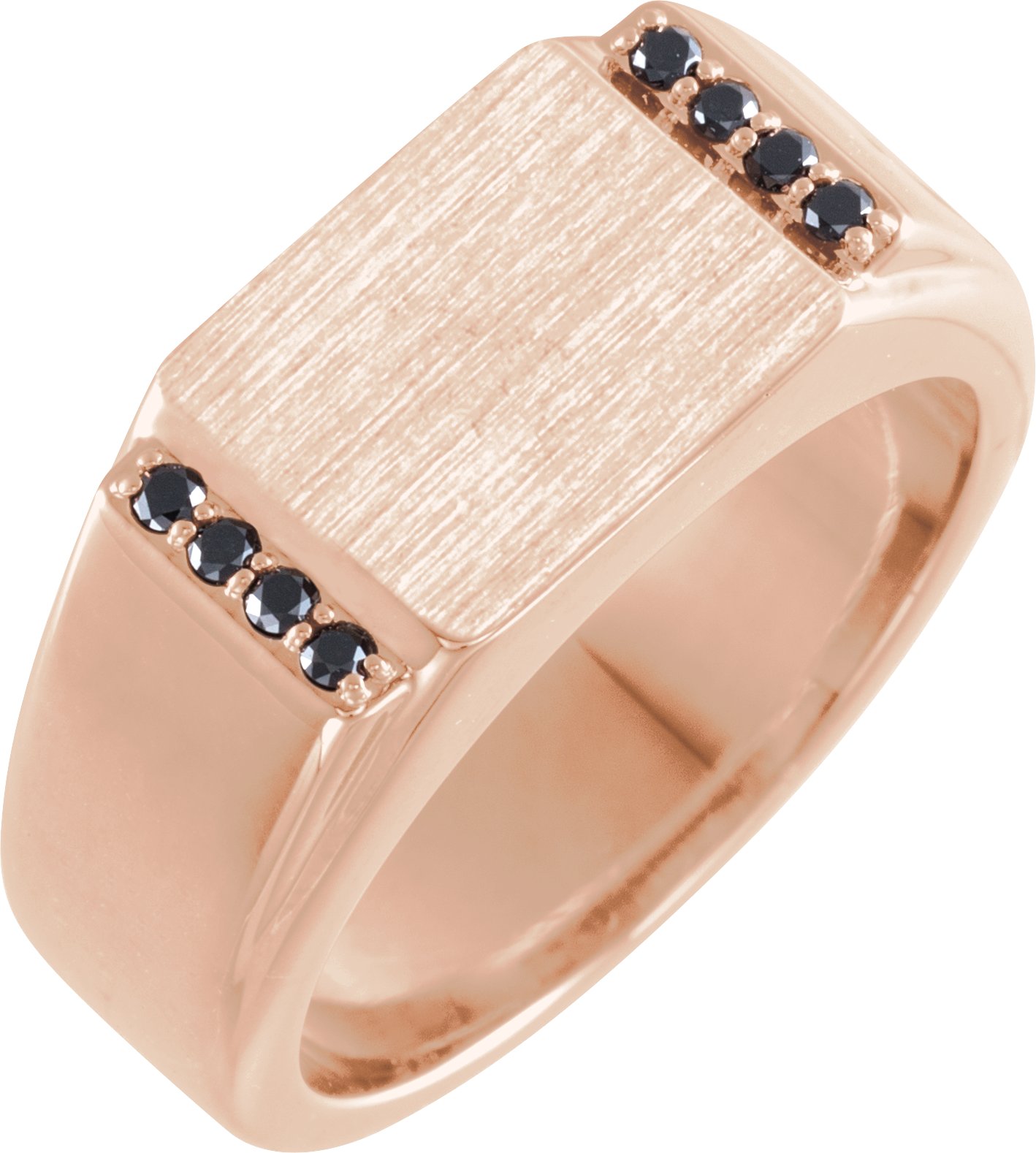 9859 / Ring / Set / 14K Rose / Natural Black Diamond / Round / 1.5 Mm / Polished / 1/10 Ctw Natural Black Diamond Signet Ring