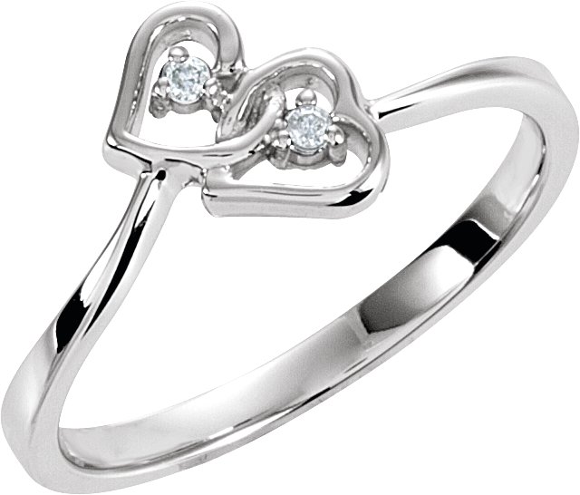 14K White .02 CTW Natural Diamond Double Heart Ring