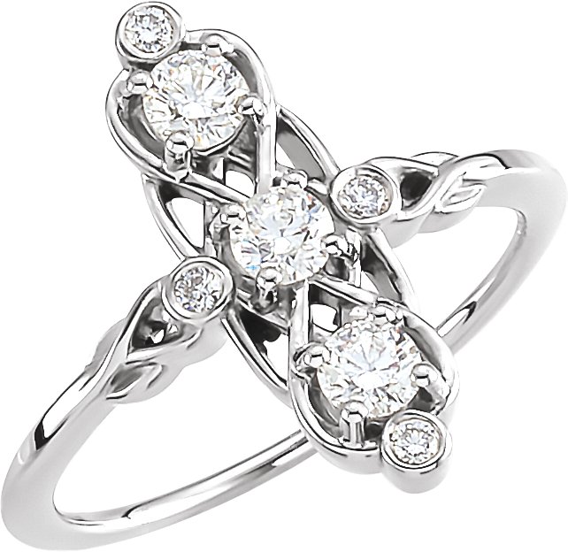 122212 / 14K White / Set / Polished / 1/2 Ctw 3-Stone Diamond Ring
