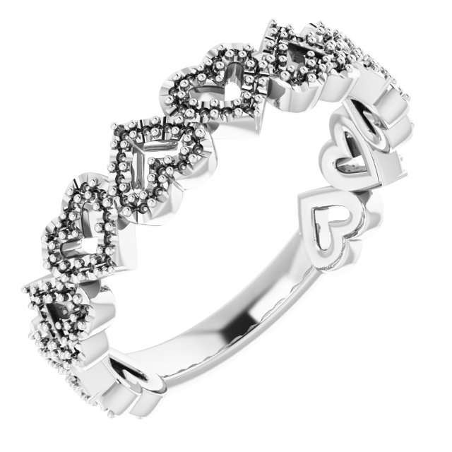 124362 / Ring / Set / 14K White / Natural Diamond / Round / .8 Mm / Polished / 1/3 Ctw Natural Diamond Stackable Heart Ring