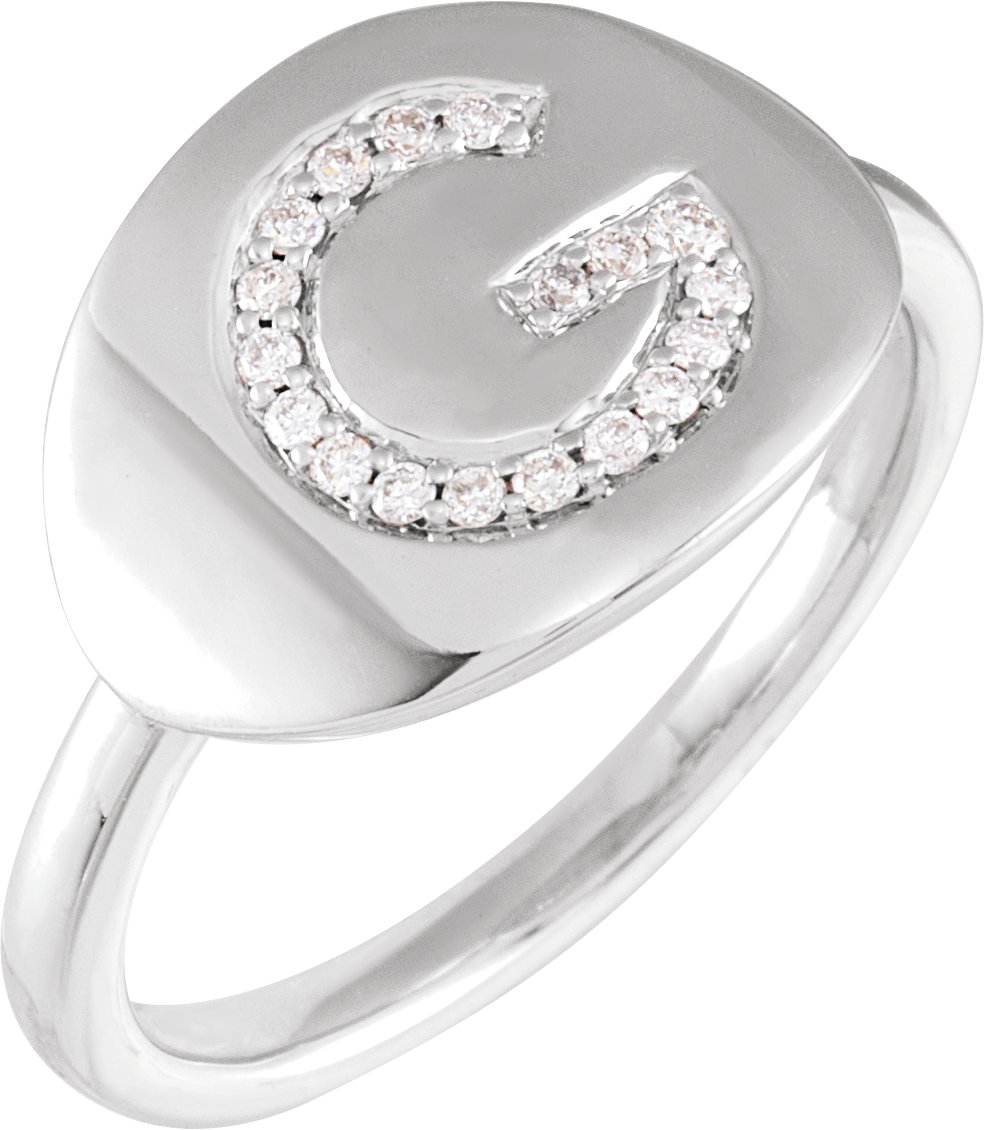 653628 / Ring / 14K White / Set / Initial G / Natural Diamond / Round / 1/8 Ctw / I1, H+ / Polished / 1/8 Ctw Natural Diamond Initial Ring