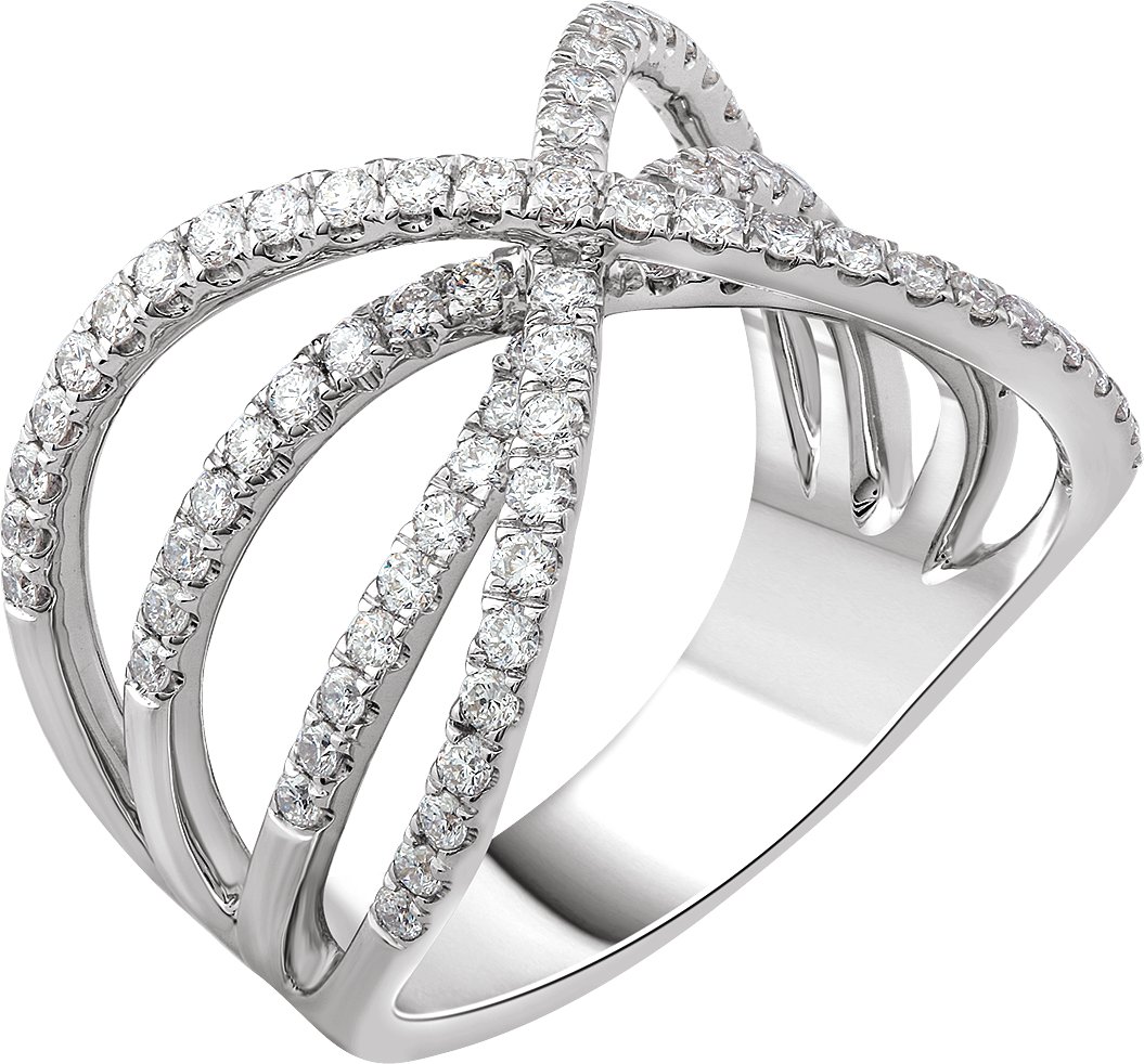 653058 / Ring / Set / 14K White / Natural Diamond / Round / Natural Diamond / Polished / 9/10 Ctw Natural Diamond Criss-Cross Ring