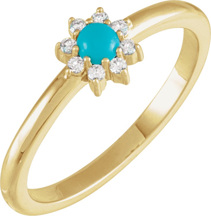 72325 / Ring / Set / 14K Yellow / Natural Turquoise / Round / 3 Mm / Natural Diamond / Polished / Natural Turquoise And .08 Ctw Natural Diamond Halo-Style Ring