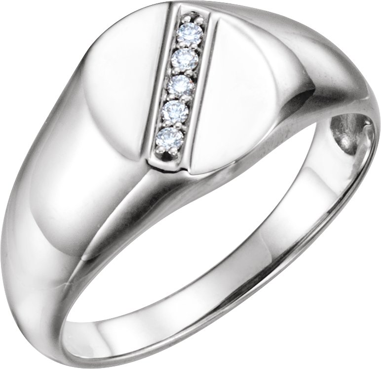 9840 / Set / Sterling Silver / Polished / .08 Ctw Diamond Mens Oval Signet Ring