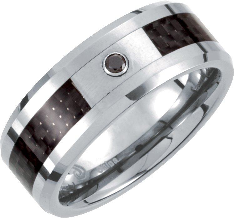 Tar445d / Band / Set / Tungsten / Natural Black Diamond / 11 / Polished / .05 Ctw Black Natural Diamond Beveled Band W/Black Carbon Fiber