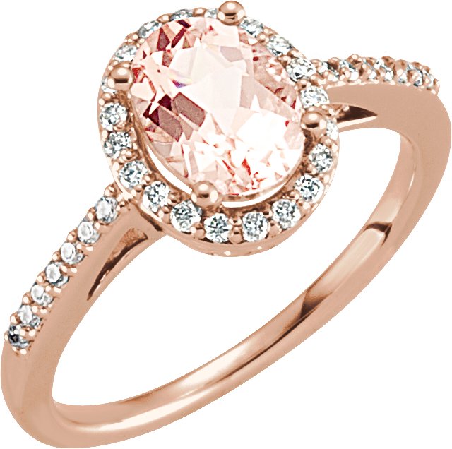 651509 / Ring / Set / 14K Rose / Natural Pink Morganite / Oval / 8 X 6 Mm / Natural Diamond / Polished / Natural Pink Morganite And 1/5 Ctw Natural Diamond Ring