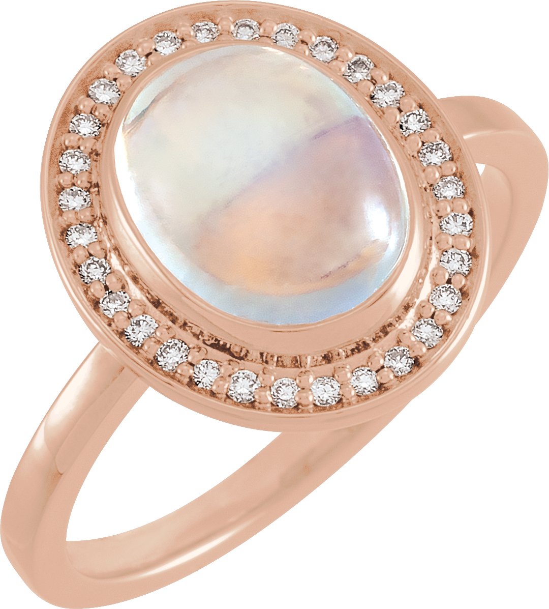 71821 / Set / 14K Rose / Natural Rainbow Moonstone / Oval / 10 X 8 Mm / Polished / 1/8 Ctw Natural Diamond And Rainbow Moonstone Ring