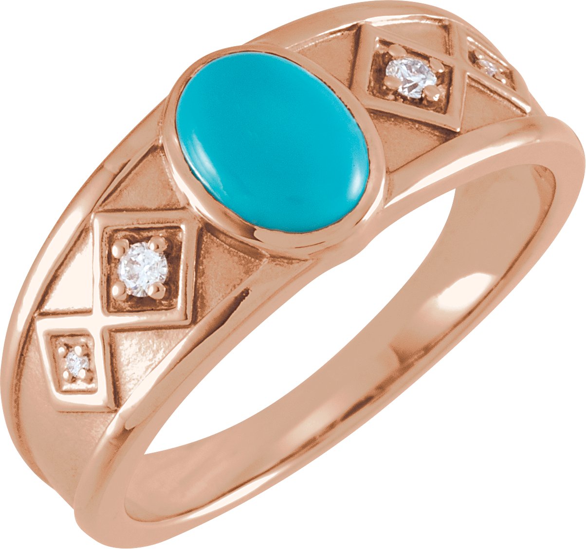 72105 / Set / 14K Rose / Turquoise / Polished / Genuine Turquoise And .05 Ctw Diamond Ring