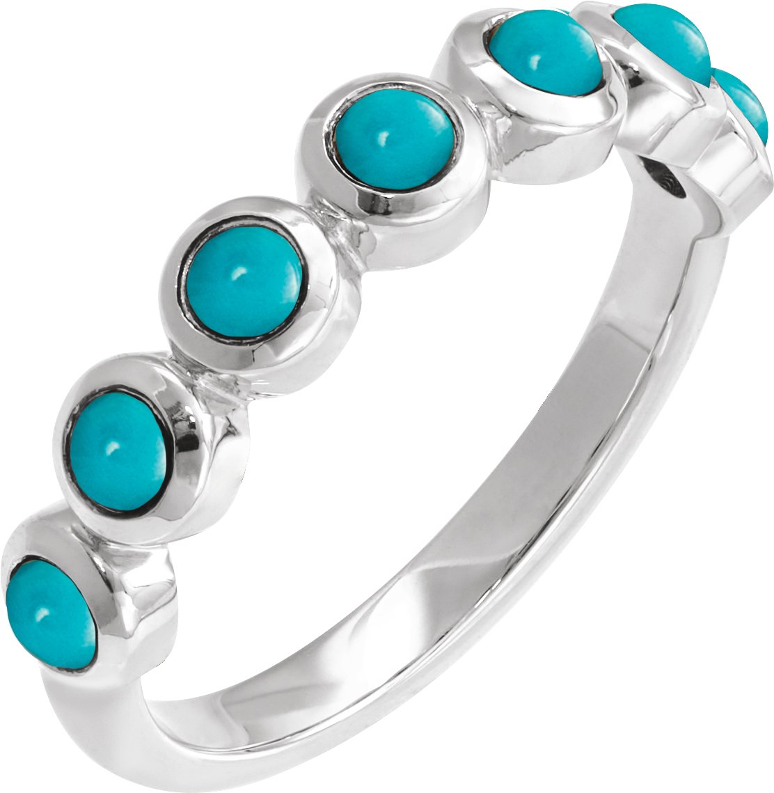 72383 / Ring / Set / 14K White / Natural Turquoise / Round / 3 Mm / Polished / Natural Turquoise Bezel-Set Cabochon Stackable Ring