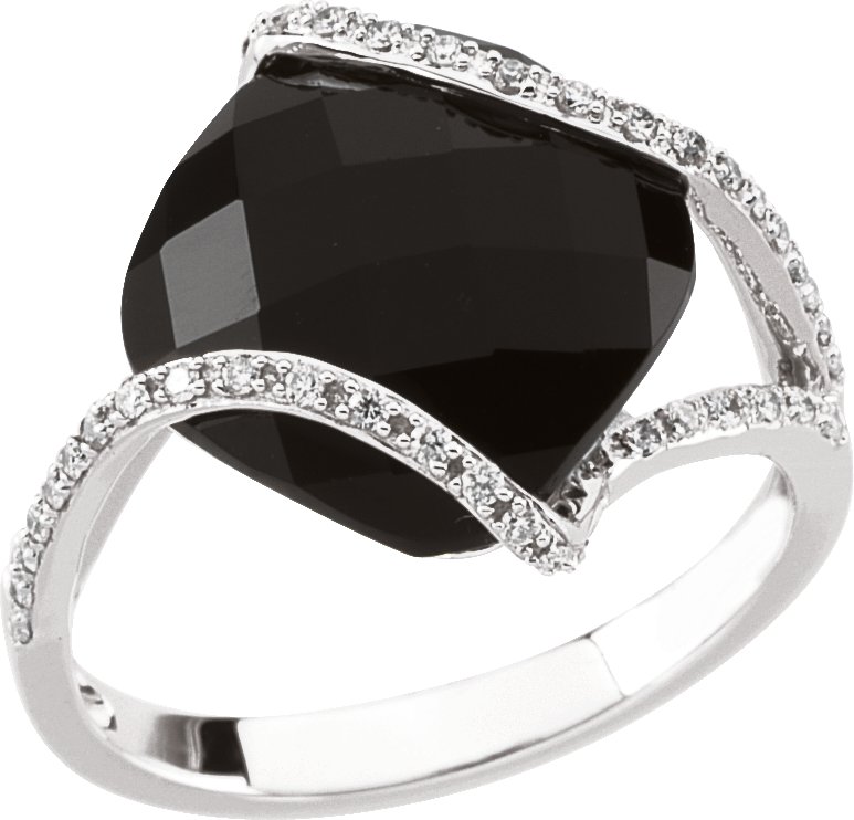 66624 / Ring / Set / 14K White / 7 / Natural Black Onyx / Cushion / 12 X 12 Mm / Natural Diamond / I1, H+ :: 1/5 Ctw / Polished / Natural Onyx And 1/5 Ctw Natural Diamond Ring