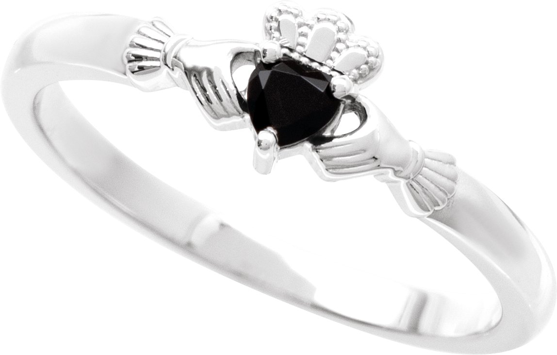 R50022 / Ring / Set / 14K White / Natural Black Onyx / Heart / 3 X 3 Mm / Polished / Natural Onyx Claddagh Ring