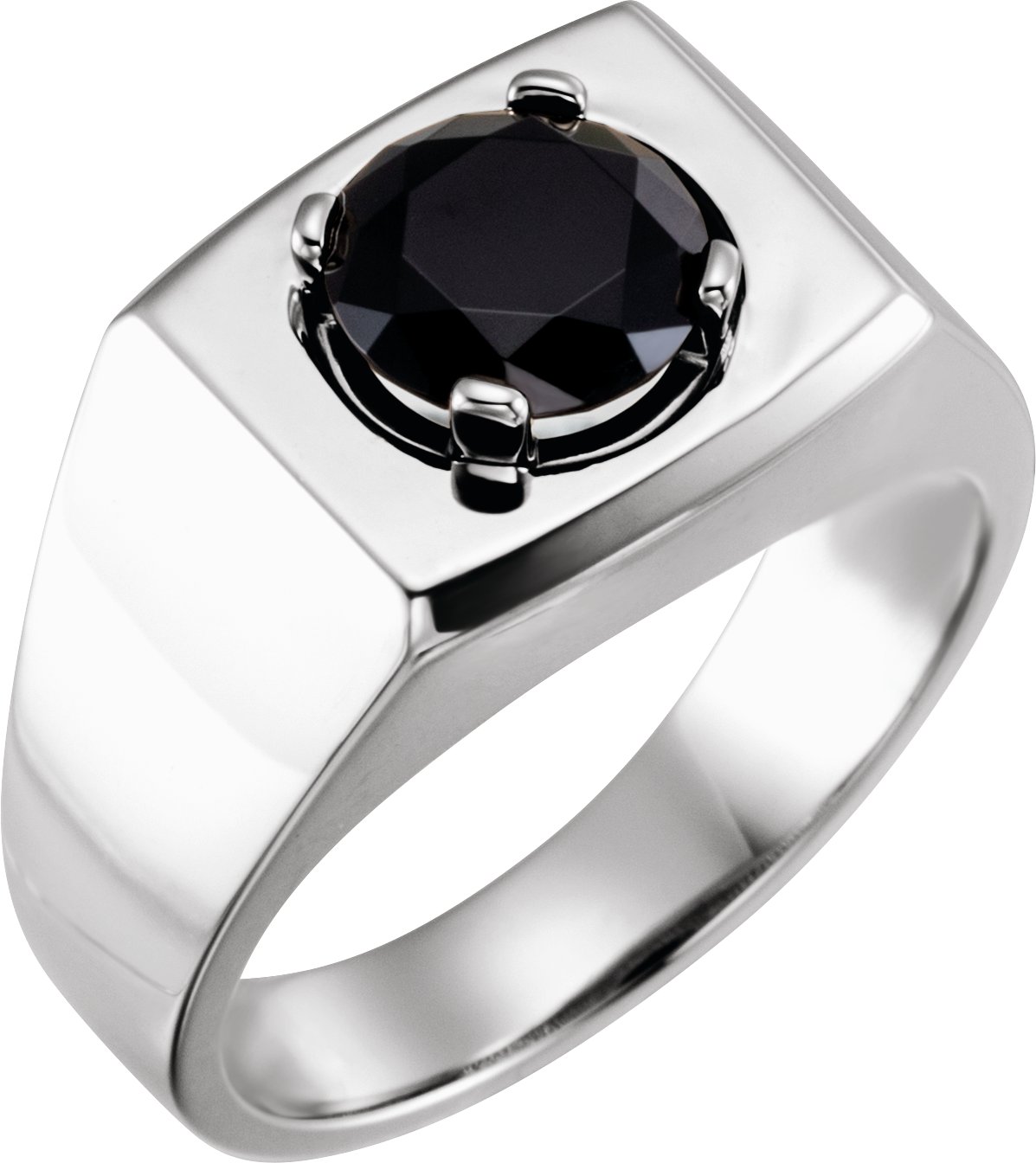 14K White Natural Black Onyx Ring