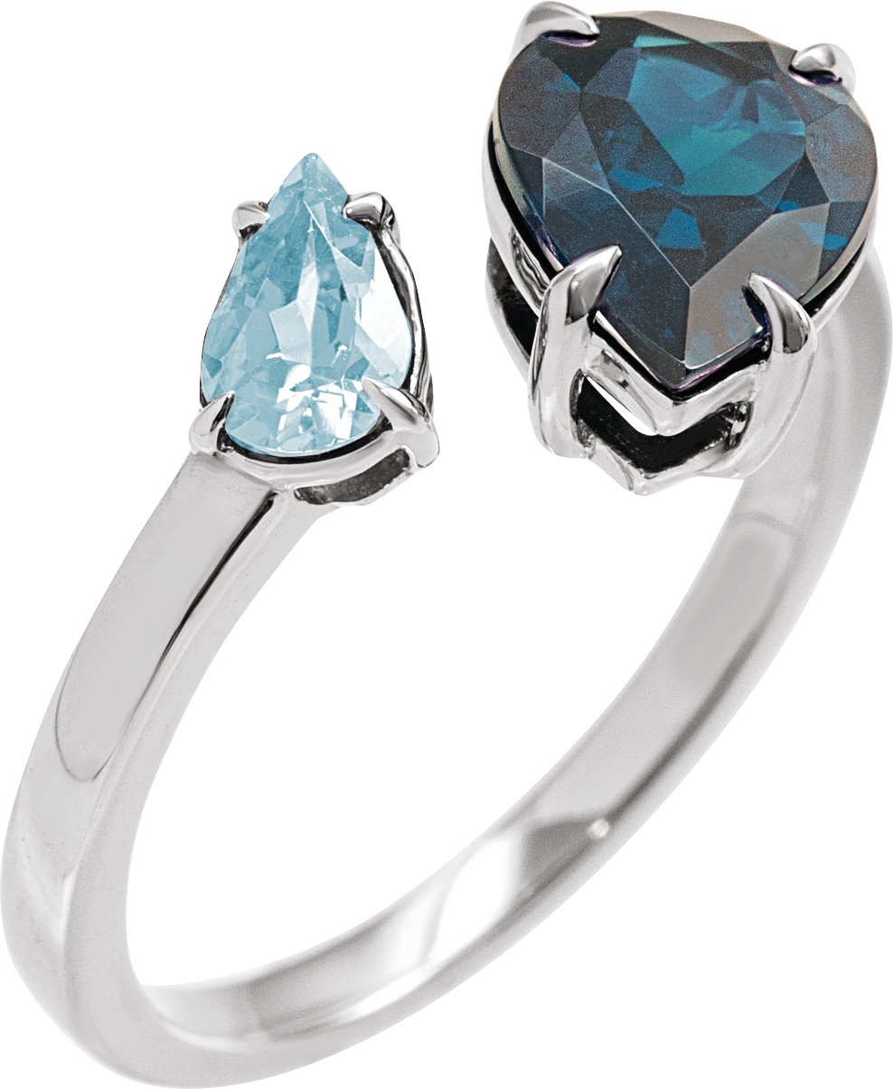 688983 / Ring / Set / 14K White / Natural London Blue Topaz / Pear / 10 X 7 Mm / Natural Sky Blue Topaz / Polished / Natural London Blue Topaz And Natural Sky Blue Topaz 2-Stone Ring