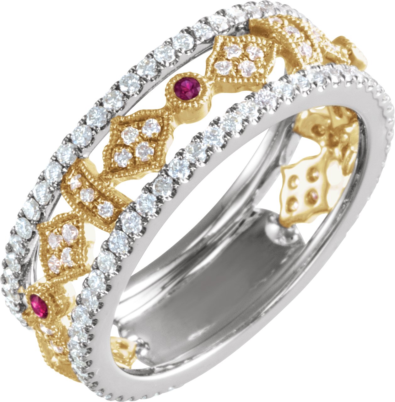 653471 / Set / 14K White/Yellow / Polished / Natural Ruby And 3/4 Ctw Natural Diamond Ring