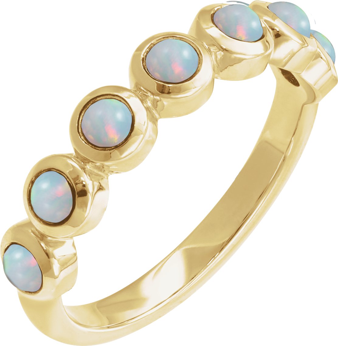 72383 / Ring / Set / 14K Yellow / Natural White Opal / Round / 3 Mm / Polished / Natural White Opal Bezel-Set Cabochon Stackable Ring