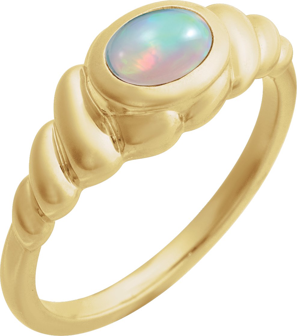72460 / Ring / Set / 14K Yellow / Natural Ethiopian Opal / Oval / 7 X 5 Mm / Polished / Natural Ethiopian Opal Twisted Cabochon Ring