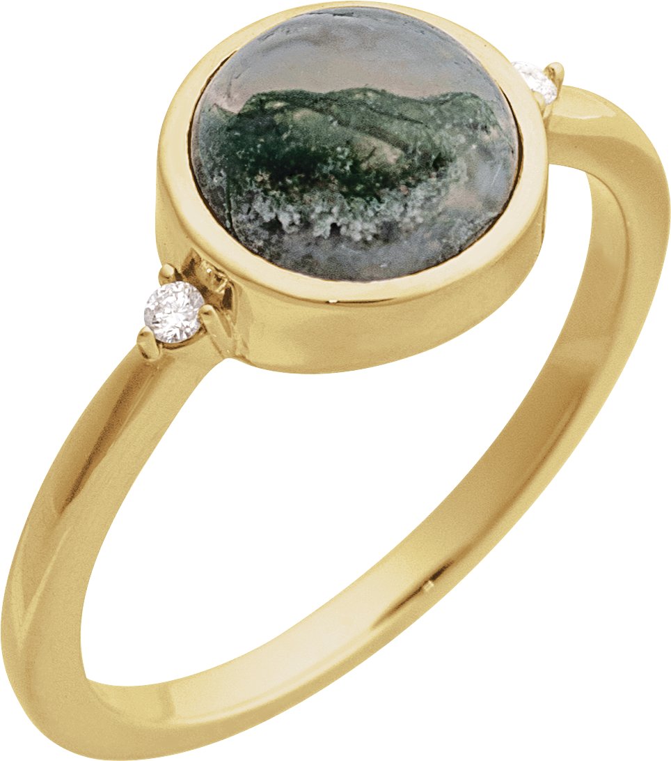 72315 / Ring / Set / 14K Yellow / Natural Moss Agate / Round / 8 Mm / Natural Diamond / Polished / Natural Moss Agate And .03 Ctw Natural Diamond Bezel-Set Cabochon Ring