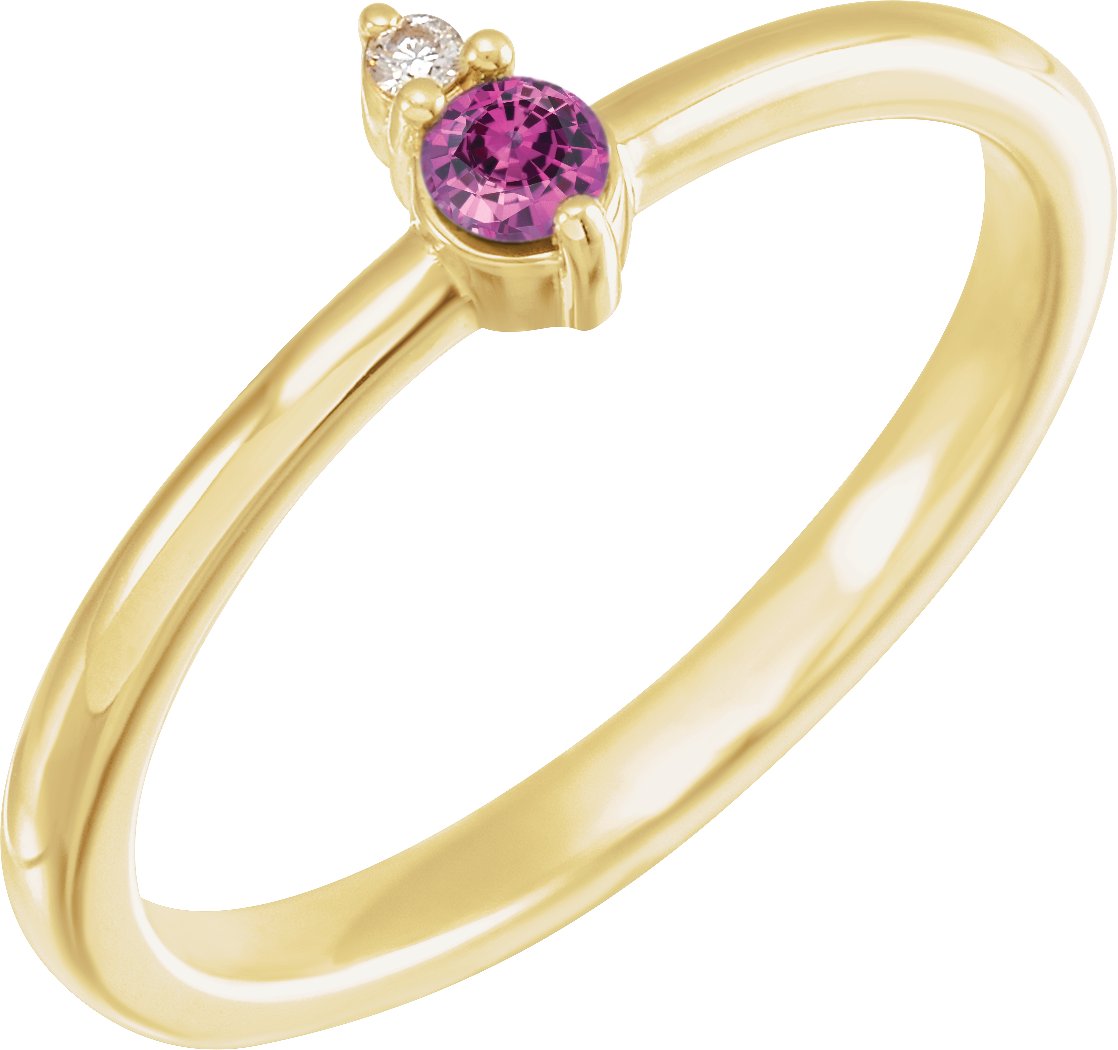 72204 / Ring / Set / 14K Yellow / Natural Pink Sapphire / Round / 3 Mm / Natural Diamond / Polished / Natural Pink Sapphire And .015 Ct Natural Diamond Ring