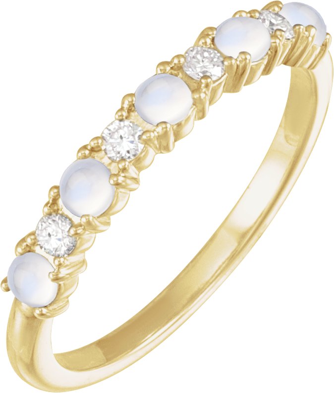 72346 / Ring / Set / 14K Yellow / Natural Rainbow Moonstone / Round / 2.5 Mm / Natural Diamond / Polished / Cabochon Natural Rainbow Moonstone And 1/8 Ctw Natural Diamond Ring
