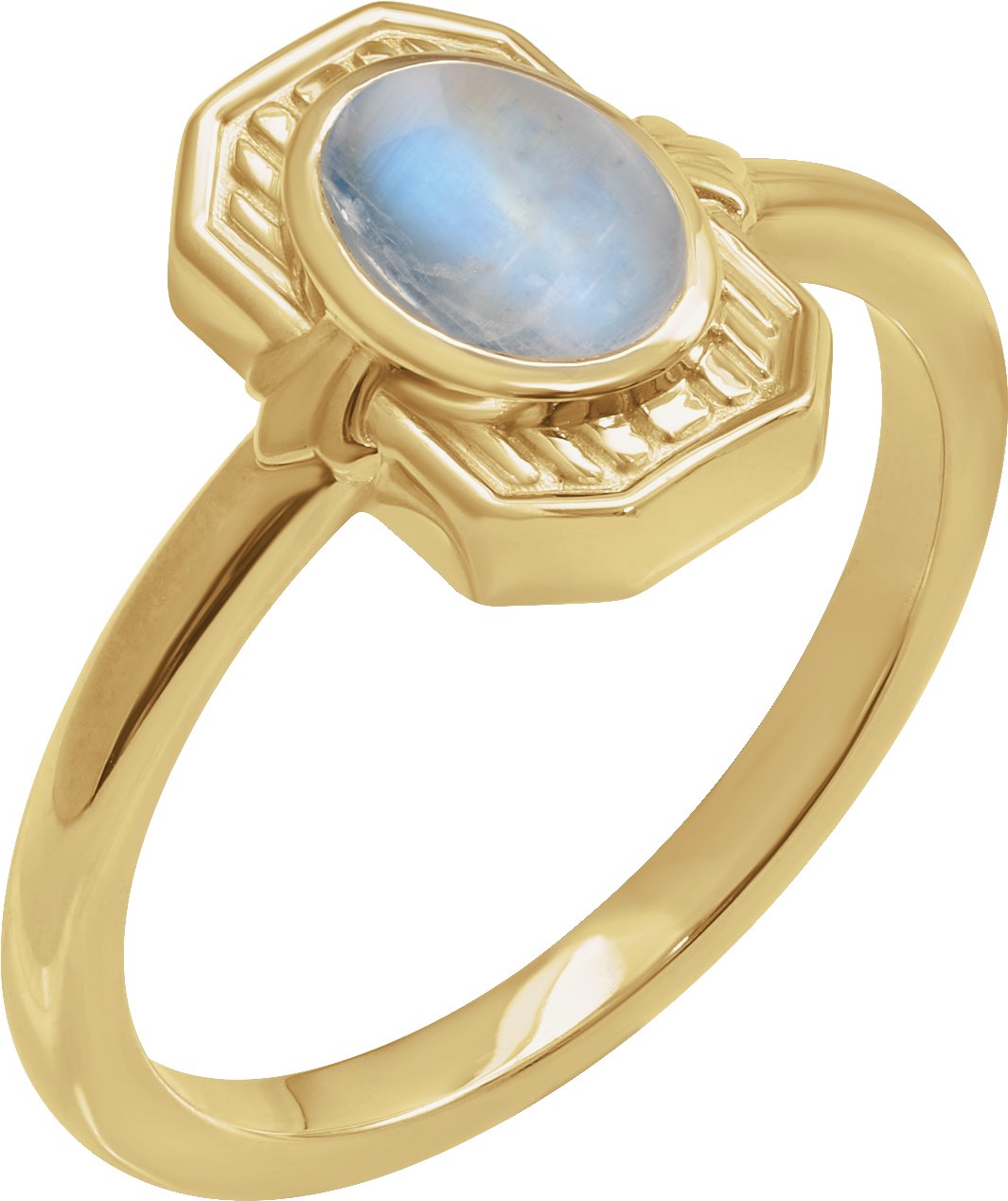 72370 / Ring / Set / 14K Yellow / Natural Rainbow Moonstone / Oval / 7 X 5 Mm / Polished / Natural Rainbow Moonstone Deco Cabochon Ring