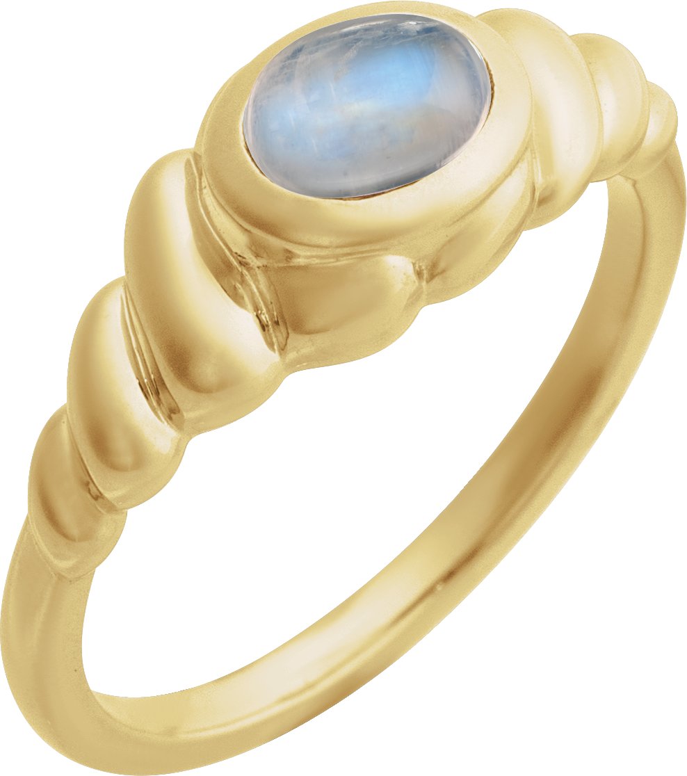 72460 / Ring / Set / 14K Yellow / Natural Rainbow Moonstone / Oval / 7 X 5 Mm / Polished / Natural Rainbow Moonstone Twisted Cabochon Ring