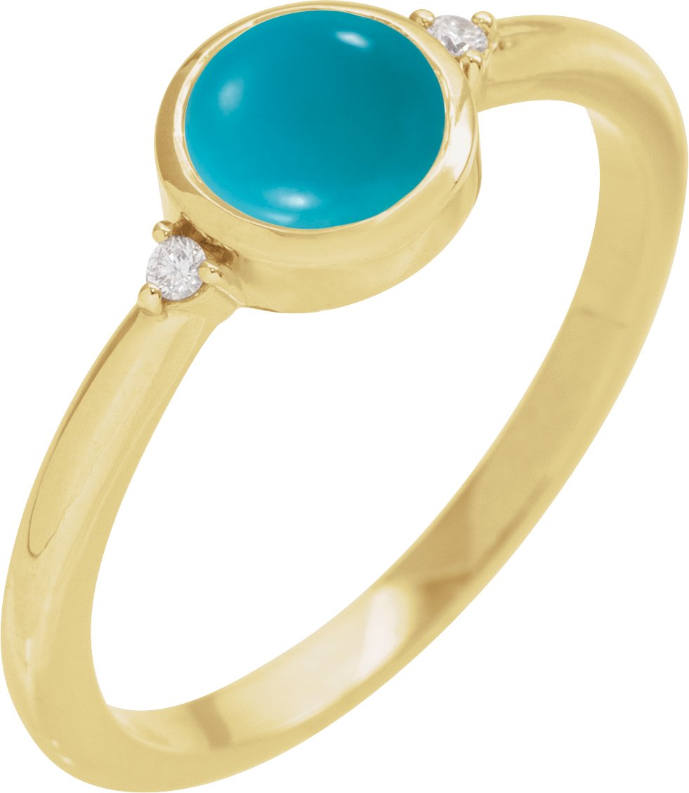 72315 / Ring / Set / 14K Yellow / Natural Turquoise / Round / 6 Mm / Natural Diamond / Polished / Natural Turquoise And .03 Ctw Natural Diamond Bezel-Set Cabochon Ring