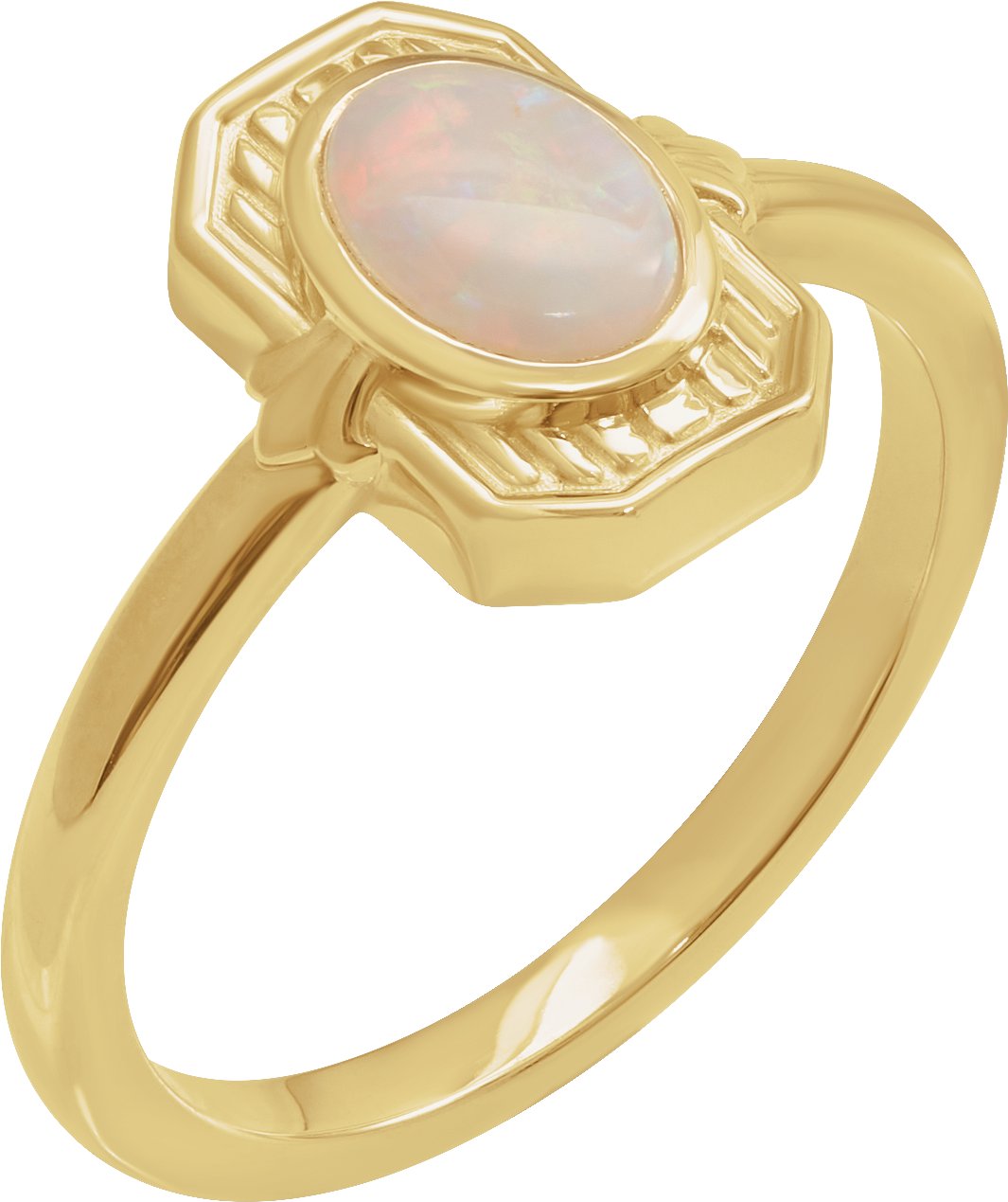72370 / Ring / Set / 14K Yellow / Natural White Opal / Oval / 7 X 5 Mm / Polished / Natural White Opal Deco Cabochon Ring