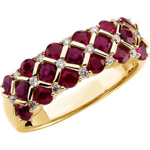 62800 / 14K Yellow / 02.50 Mm/ 1/6 Ct Tw / Polished / Genuine Ruby And Diamond Ring