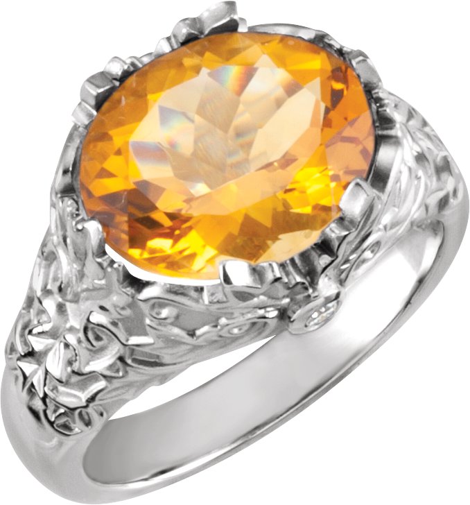 67967 / 14K White / .04 Ct Tw/12.00X10.00 Mm / Polished / Genuine Citrine Ring