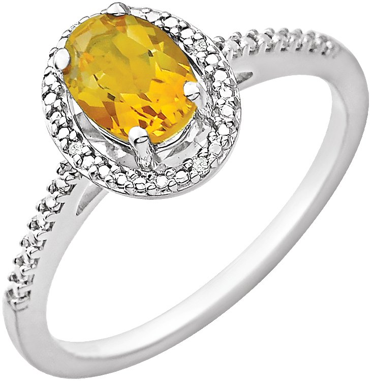 652631 / Ring / Set / Sterling Silver / Natural Citrine / Oval / 7 X 5 Mm / Natural Diamond / Polished / Natural Citrine And .01 Ctw Natural Diamond Ring
