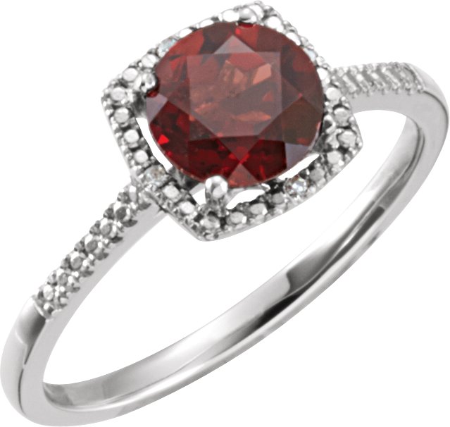 Sterling Silver Natural Mozambique Garnet & .01 CTW Natural Diamond Ring