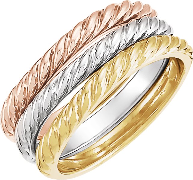 14K Tri-Color Twisted Rope Stackable Band - Set of 3